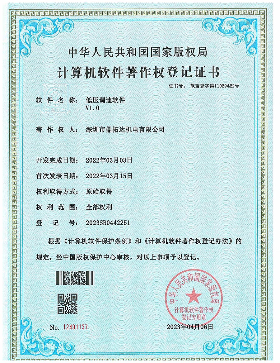 首頁->產品認證->低壓調速軟件 V1.0